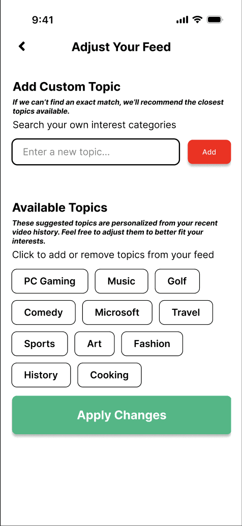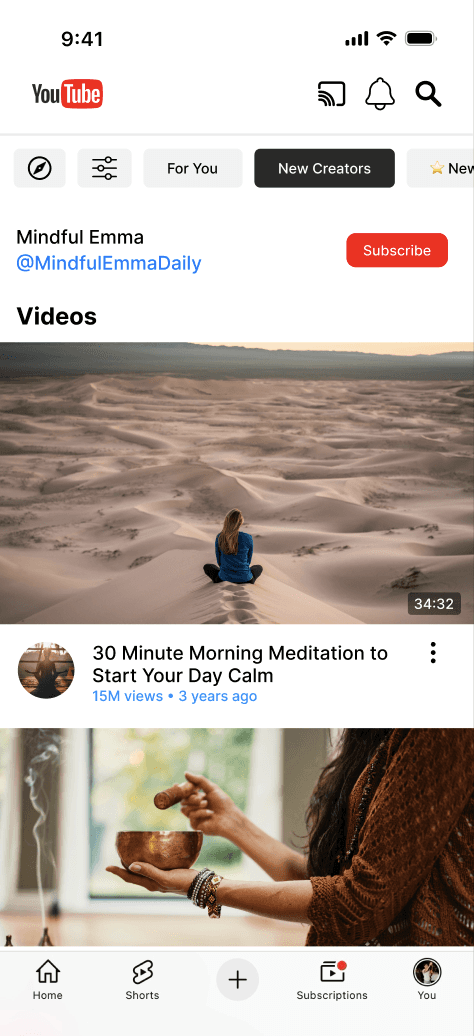 This project was completed as part of my Master's program. The assignment was to redesign an existing app using research to identify real problems and propose interface improvements. I chose YouTube's mobile homepage because of how heavily it relies on algorithmic recommendations and how often that frustrates users.